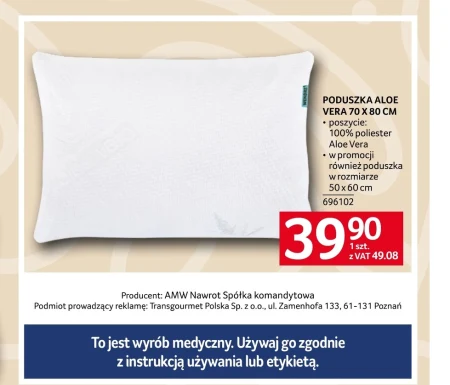 PODUSZKA ALOE VERA 70 X 80 CM · poszycie: 100% poliester Aloe Vera · w promocji również poduszka w rozmiarze 50x60 cm 696102