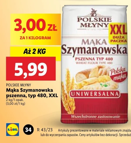 POLSKIE MŁYNY Mąka Szymanowska Uniwersalna pszenna typ 480 2 kg - Oferta archiwalna