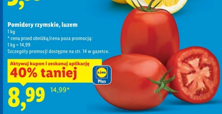 Pomidory rzymskie, luzem 1 kg * cena przed obniżką/cena poza promocją: 1 kg = 14,99