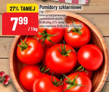 Pomidory szklarniowe 1 kg cena sprzed pierwszego zastosowania obniżki: 10,99 zł/kg, 27% taniej cena regularna: 10,99 zł/kg, 27% taniej
