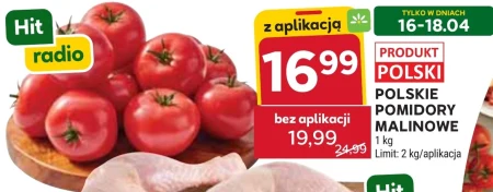 Polskie pomidory malinowe kupisz w ofercie Stokrotka w cenie 16,99 zł za kilogram przy zakupie z aplikacją. Produkt jest dostępny w opakowaniach kilogramowych, z limitem dwóch kilogramów na aplikację. Te wyjątkowo smaczne i soczyste pomidory doskonale sprawdzą się w sałatkach, sosach, czy jako dodatek do dań obiadowych. Promocja trwa tylko w dniach 16-18 kwietnia, więc warto skorzystać z tej okazji, aby zaopatrzyć się w wysokiej jakości, polskie warzywa. Oferta ważna od 2026-04-16 do 2026-04-18 Źródło: gazetka Stokrotka