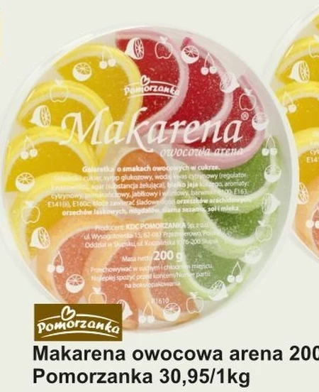 Pomorzanka Makarena Galaretki o smakach cytrynowym pomarańczowym jabłkowym wiśniowym w cukrze 200 g - Oferta archiwalna