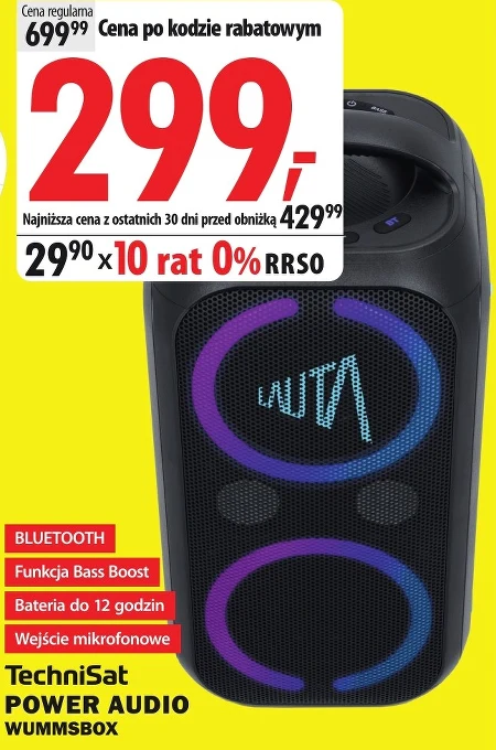 Technisat POWER AUDIO WUMMSBOX BLUETOOTH Funkcja Bass Boost Bateria do 12 godzin Wejście mikrofonowe