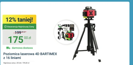 Poziomica laserowa 4D z 16 liniami występuje w ofercie ERLI w cenie 175,00 zł, co stanowi 12% zniżki względem najniższej ceny z ostatnich 30 dni wynoszącej 199,00 zł, a do tego oferowana jest darmowa dostawa. To precyzyjne narzędzie znajdzie zastosowanie podczas różnorodnych prac remontowych i budowlanych, pomagając w idealnym wypoziomowaniu powierzchni w pionie i poziomie. Dzięki możliwości generowania aż szesnastu linii laserowych, praca staje się szybsza i dokładniejsza, a efekty bardziej profesjonalne. Skorzystaj z tej okazji i zaopatrz się w niezawodną poziomice laserową w atrakcyjnej cenie.