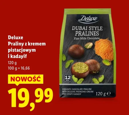 Deluxe Praliny z kremem pistacjowym i kadayif 120 g 100 g = 16,66
