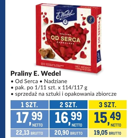 Praliny E. Wedel · Od Serca · Nadziane · pak. po 1/11 szt. x 114/117 g · sprzedaż na sztuki i opakowania zbiorcze