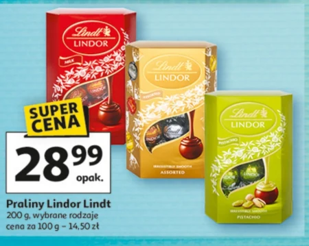Praliny Lindor Lindt 200 g, wybrane rodzaje cena za 100 g - 14,50 zł