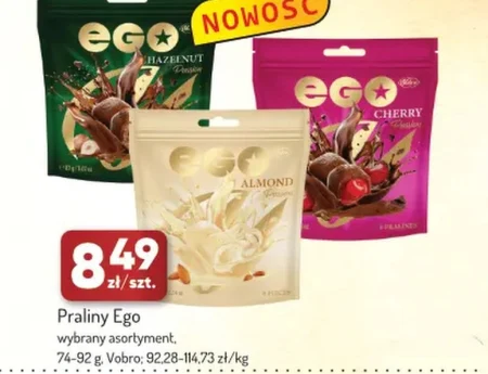 Praliny Ego wybrany asortyment, 74-92 g. Vobro; 92,28–114,73 zł/kg 8,49 zł/szt. Praliny Ego to idealna przekąska dla miłośników słodkości, dostępne w wybranym asortymencie w opakowaniach o wadze 74-92 gramów. Sprawdzą się jako upominek lub sposób na krótką przyjemność w ciągu dnia. Aktualną ofertę i dostępność pralyn Ego warto sprawdzić w najnowszej gazetce Avita, gdzie można znaleźć szczegółowe informacje na temat wyboru smaków. Produkt oferowany jest przez Vobro w cenie 8,49 zł za sztukę, co odpowiada 92,28–114,73 zł/kg.