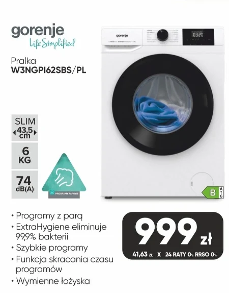 Pralka W3NGPI62SBS/PL • Programy z parą • ExtraHygiene eliminuje 99,9% bakterii • Szybkie programy • Funkcja skracania czasu programów • Wymienne łożyska
