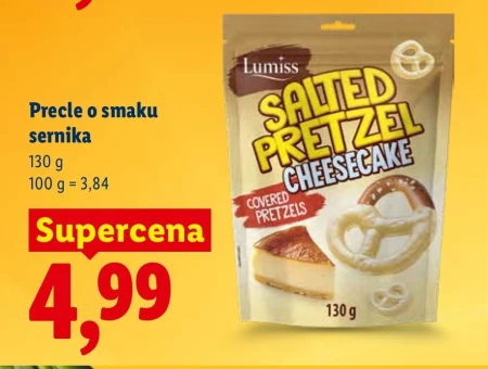 Precle o smaku sernika, dostępne w ofercie Lidl, kosztują 4,99 za opakowanie 130 g, gdzie 100 g produktu wyceniono na 3,84. Te wyjątkowe precle to słodka przekąska, która z pewnością zaspokoi Twoje łakocie i przypomni ulubiony deser. Doskonale sprawdzą się jako dodatek do porannej kawy, popołudniowej herbaty lub po prostu jako chwila przyjemności w ciągu dnia. Skorzystaj z superceny i spróbuj tego oryginalnego połączenia smaków już dziś.