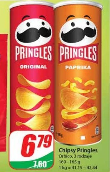 Chipsy Pringles, 3 rodzaje, waga 160-165 g.