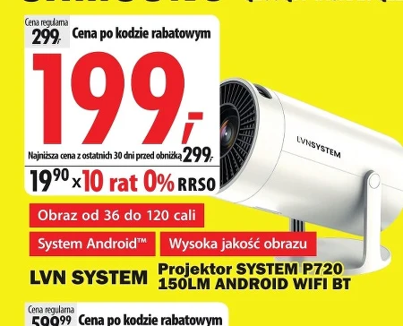 Projektor SYSTEM P720 150LM ANDROID WIFI BT Obraz od 36 do 120 cali System Android™ Wysoka jakość obrazu