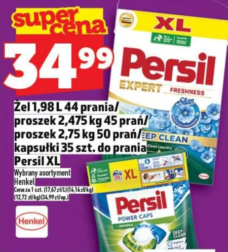 Żel 1,98 L 44 prania/ proszek 2,475 kg 45 prań/ proszek 2,75 kg 50 prań/ E kapsułki 35 szt. do prania Persil XL Wybrany asortyment Henkel Cena za 1 szt. (17,67 zł/L)(14,14zł/kg) (12,72 zł/kg)(34,99zł/op.)