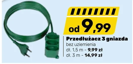 Przedłużacz 3 gniazda bez uziemienia dł. 1,5 m - 9,99 zł dł. 3 m - 14,99 zł