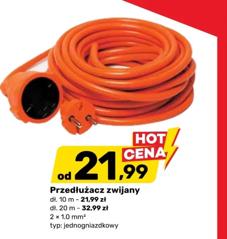 Przedłużacz zwijany dł. 10 m - 21,99 zł dł. 20 m - 32,99 zł 2 × 1.0 mm2 typ: jednogniazdkowy
