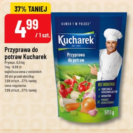 Przyprawa do potraw Kucharek Prymat, 0,5 kg 1 kg - 9,98 zł najniższa cena z ostatnich 30 dni przed obniżką: 7,99 zł/szt., 37% taniej cena regularna: 7,99 zł/szt., 37% taniej