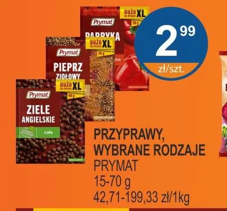 PRZYPRAWY, WYBRANE RODZAJE PRYMAT 15-70 g