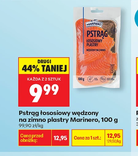Pstrąg łososiowy wędzony na zimno plastry Marinero, 100 g 99,90 zł/kg