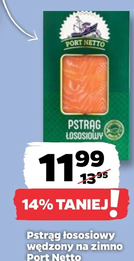 Pstrąg łososiowy wędzony na zimno występuje w ofercie Netto w cenie 11,99, zamiast 13,95, czyli 14% taniej. To delikatny i smaczny produkt, idealny na szybką przekąskę lub jako składnik bardziej rozbudowanych dań. Wędzony na zimno pstrąg doskonale smakuje z pieczywem, świeżymi warzywami oraz różnego rodzaju sosami. To wyjątkowa okazja, by cieszyć się wysoką jakością w atrakcyjnej cenie. Oferta ważna od 2026-04-16 do 2026-04-18 Źródło: gazetka Netto