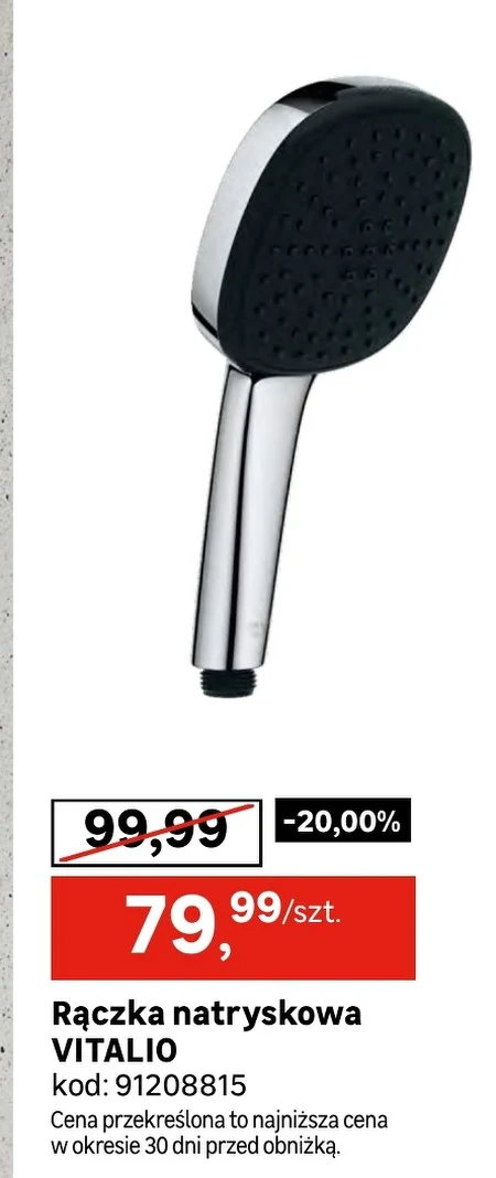 Rączka natryskowa VITALIO kod: 91208815 Cena przekreślona to najniższa cena w okresie 30 dni przed obniżką.
