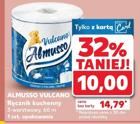 ALMUSSO VULCANO Ręcznik kuchenny 3-warstwowy, 60 m 1 szt. opakowanie Ręcznik kuchenny 3-warstwowy ALMUSSO VULCANO doskonale sprawdzi się w każdej kuchni, skutecznie absorbując wilgoć i zabrudzenia. Dzięki swojej dużej długości, 60 m, jest idealny do długotrwałego użytku, co czyni go praktycznym wyborem do codziennych obowiązków kuchennych.
