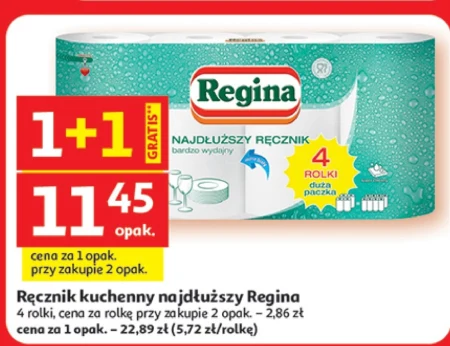 Ręcznik kuchenny najdłuższy Regina 4 rolki, cena za rolkę przy zakupie 2 opak. - 2,86 zł cena za 1 opak. - 22,89 zł (5,72 zł/rolkę)