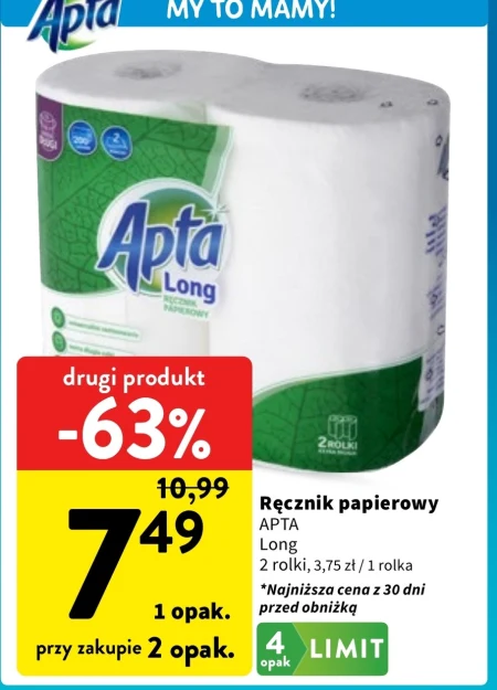 Ręcznik papierowy APTA Long 2 rolki, 3,75 zł / 1 rolka