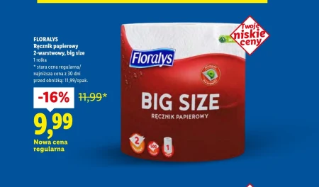FLORALYS Ręcznik papierowy 2-warstwowy, big size 1 rolka * stara cena regularna/ najniższa cena z 30 dni przed obniżką: 11,99/opak. Zapewniając niezastąpioną higienę w kuchni i poza nią, ręczniki papierowe Floralys idealnie sprawdzą się do wycierania rąk, czyszczenia powierzchni oraz jako pomocnik podczas przygotowywania posiłków. Ich dwuwarstwowa struktura i duży rozmiar gwarantują wyjątkową chłonność i wytrzymałość, czyniąc je niezastąpionym elementem wyposażenia każdego domu, szczególnie przydatnym podczas sprzątania i gotowania. Wybierz ekonomiczny i praktyczny sposób na utrzymanie czystości z ręcznikami papierowymi Floralys, idealnymi do użytku codziennego i oszczędnym rozwiązaniem dla Twojego gospodarstwa domowego.