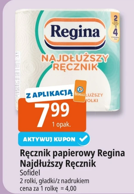 Ręcznik papierowy Regina Najdłuższy Ręcznik Sofidel 2 rolki, gładki/z nadrukiem cena za 1 rolkę = 4,00