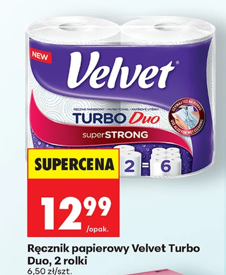 Ręcznik papierowy Velvet Turbo Duo, 2 rolki 6,50 zł/szt.