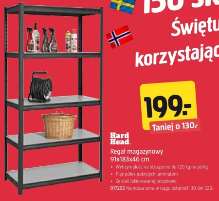 Regał magazynowy 91×183×46 cm · Wytrzymałość na obciążenie do 120 kg na półkę · Pięć półek pokrytych laminatem · Ze stali lakierowanej proszkowo 017295 Najniższa cena w ciągu ostatnich 30 dni 329 .-