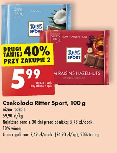 Ritter Sport Czekolada mleczna z rodzynkami w rumie i orzechami laskowymi 100 g - Oferta archiwalna