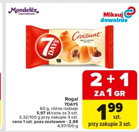 Rogal 7DAYS 60 g, różne rodzaje 5,97 zł/cena za 3 szt. 3,32/100 g przy zakupie 3 szt. cena 1 szt. poza zestawem - 2,98 4,97/100 g