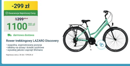 Rower trekkingowy LAZARO Discovery • wygodna, wyprostowana pozycja • idealny na szosę i ścieżki szutrowe • wysokiej jakości osprzęt Shimano Najniższa cena z 30 dni: 1399,00 zł
