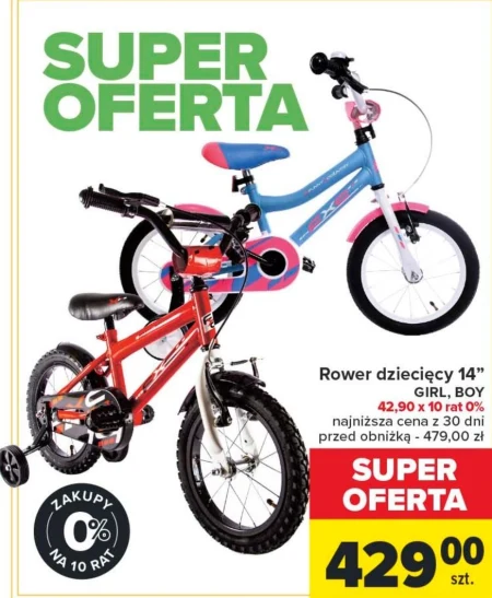 Rower dziecięcy 14" GIRL, BOY 42,90 x 10 rat 0% najniższa cena z 30 dni przed obniżką - 479,00 zł