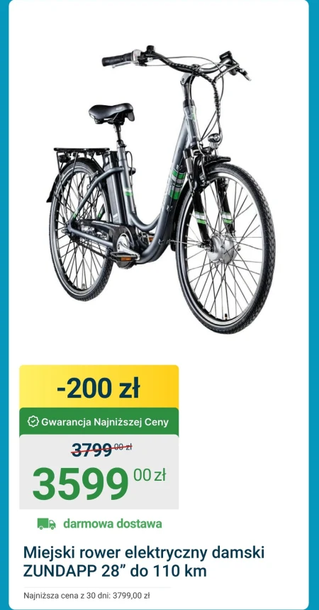 Miejski rower elektryczny damski ZUNDAPP 28” do 110 km Najniższa cena z 30 dni: 3799,00 zł