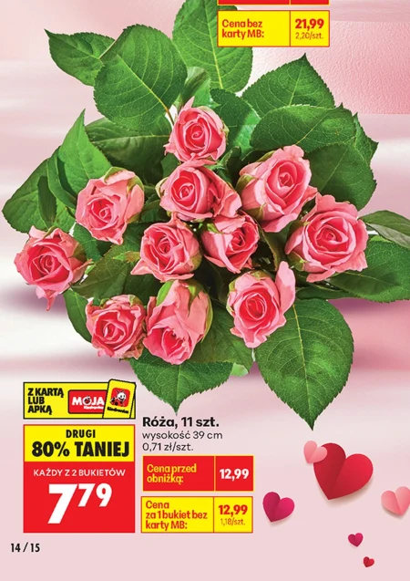 Róża, 11 szt. wysokość 39 cm 0,71 zł/szt.