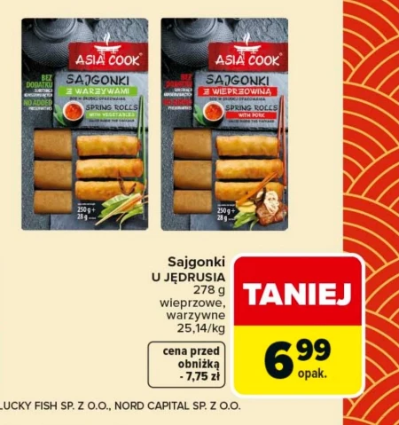 Sajgonki U JĘDRUSIA 278 g wieprzowe, warzywne 25,14/kg cena przed obniżką - 7,75 zł