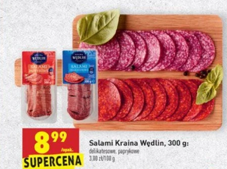 Salami, waga 300 g. Delikatesowe, paprykowe.