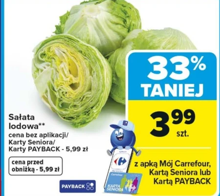 Sałata lodowa ** cena bez aplikacji/ Karty Seniora/ Karty PAYBACK - 5,99 zł