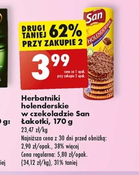 San Holenderskie Herbatniki półsłodkie oblane czekoladą mleczną 170 g - Oferta archiwalna