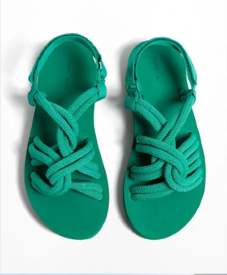 Sandały kąpielowe na platformie ze sznurkowymi troczkami.