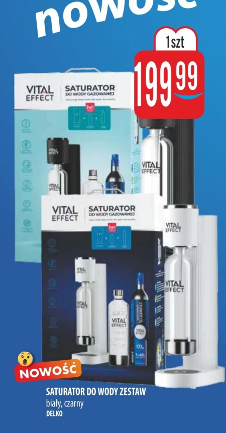 Saturator do wody gazowanej Delko Vital Effect dostępny jest w Mokpol w cenie 199,99 zł za jeden zestaw w kolorze białym lub czarnym. Urządzenie pozwala na samodzielne przygotowanie wody gazowanej w domu, oferując wygodną alternatywę dla kupowania gotowych napojów. Vital Effect to nowość, która pozwoli cieszyć się orzeźwiającymi, gazowanymi napojami o dowolnym stopniu nagazowania. Skorzystaj z możliwości przygotowywania ulubionych, bąbelkowych napojów w zaciszu domowym.