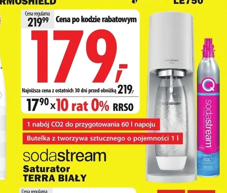 sodastream® Saturator TERRA BIAŁY 1 nabój CO2 do przygotowania 60 l napoju Butelka z tworzywa sztucznego o pojemności 1 l