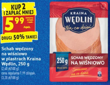 Schab wędzony na wiśniowo w plastrach, waga 250 g. Kup 2 i zapłać mniej - 5,99 zł/opak.