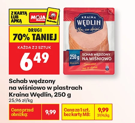 Schab wędzony na wiśniowo w plastrach Kraina Wędlin, 250 g 25,96 zł/kg
