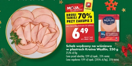 Schab wędzony na wiśniowo w plastrach Kraina Wędlin, 250 g 25,96 zł/kg Cena przed obniżką: 9,99 zł/opak., 35% mniej Cena regularna: 9,99 zł/opak. (39,96 zł/kg), 35% taniej
