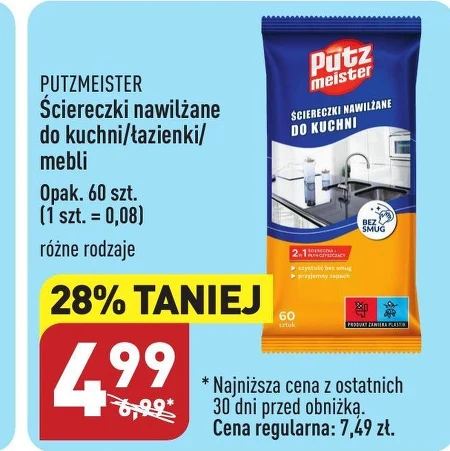 PUTZMEISTER Ściereczki nawilżane do kuchni/łazienki/ mebli Opak. 60 szt. różne rodzaje