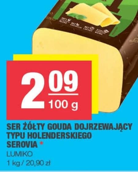 SER ŻÓŁTY GOUDA DOJRZEWAJĄCY TYPU HOLENDERSKIEGO SEROVIA LUMIKO 1 kg / 20,90 zł