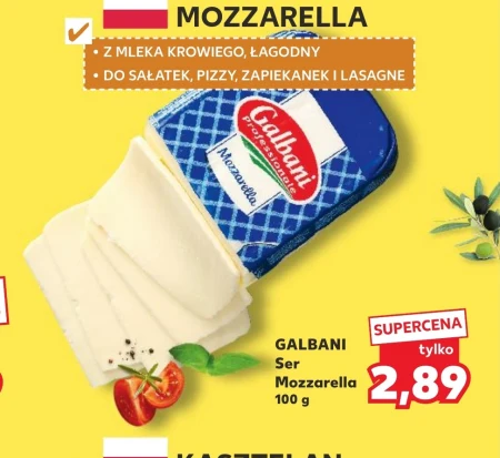 GALBANI Ser Mozzarella 100 g Świetnie sprawdzi się jako dodatek do sałatek, nadając im świeżości i włoskiego charakteru. Mozzarella Galbani doskonale roztapia się, co czyni ją idealnym składnikiem pizzy oraz zapiekanek.